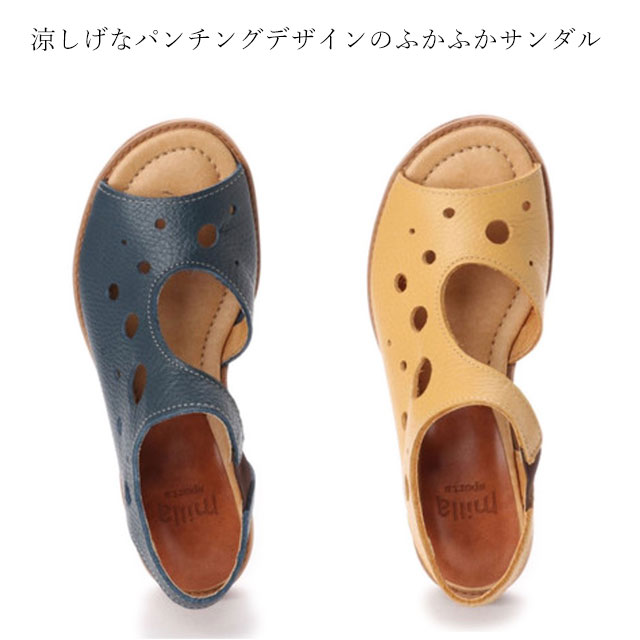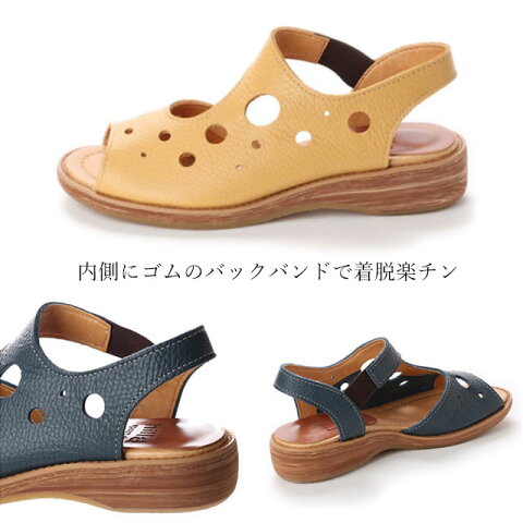 送料無料 レディース サンダル ミラスポーツ Milla sports 日本製 本革 超人気 ふかふか パンチングサンダル カジュアル ゴム バックバンド 着脱楽チン 牛革 軽量 柔らか ネイビー イエロー コンビニ受取対応商品